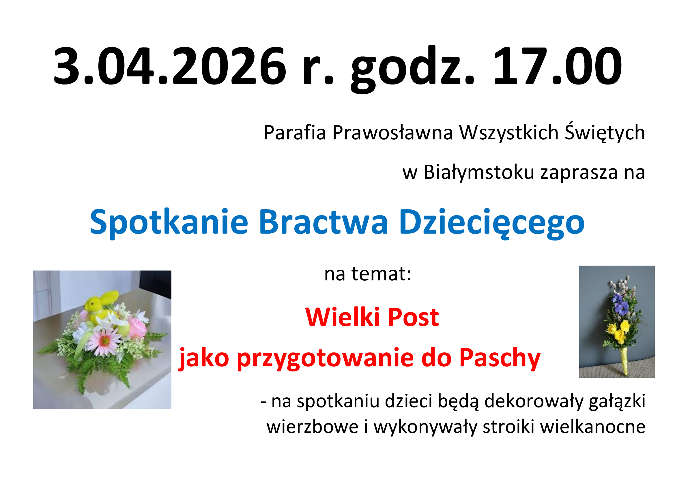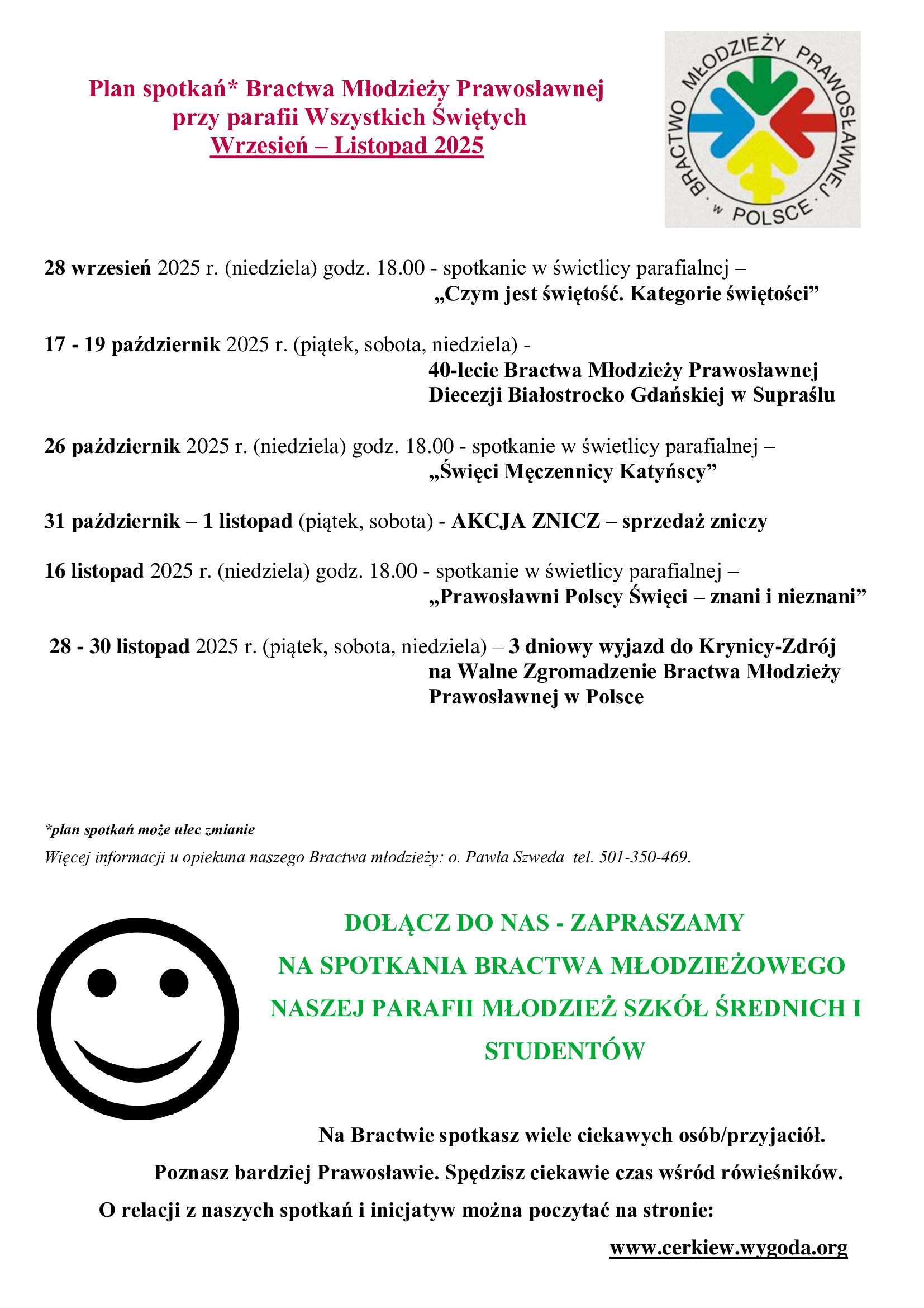 - 17.00 Spotkanie Bractwa Dziecięcego