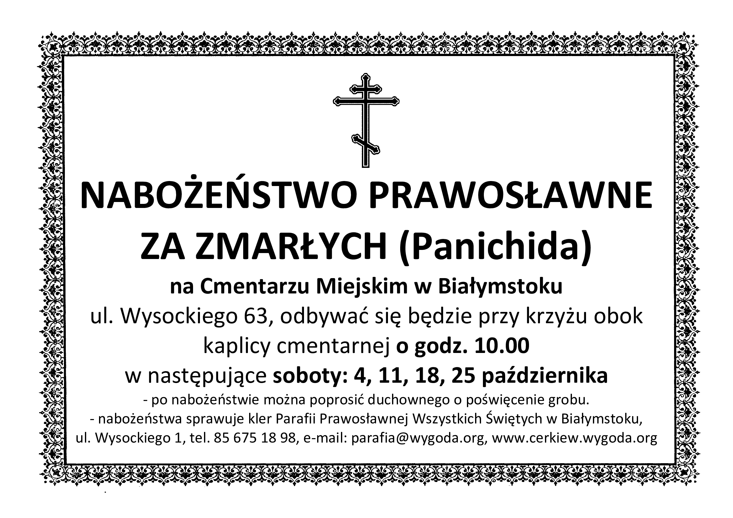 - 8.00 Św. Liturgia i Panichida za zmarłe dzieci