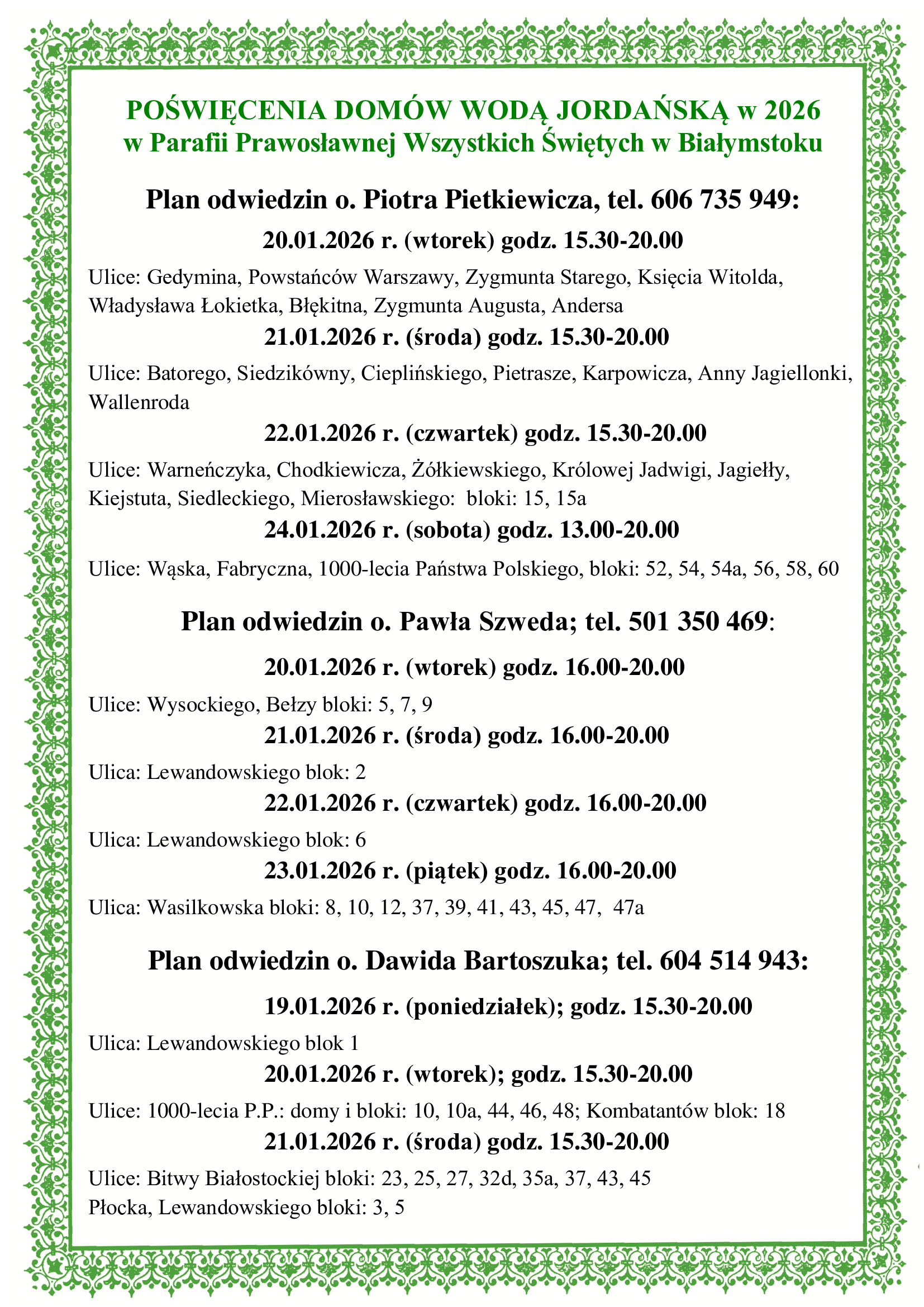 (np. sprzątanie grobu, mycie nagrobka, zapalanie zniczy). Szczegółowe informacje w kancelarii parafialnej.